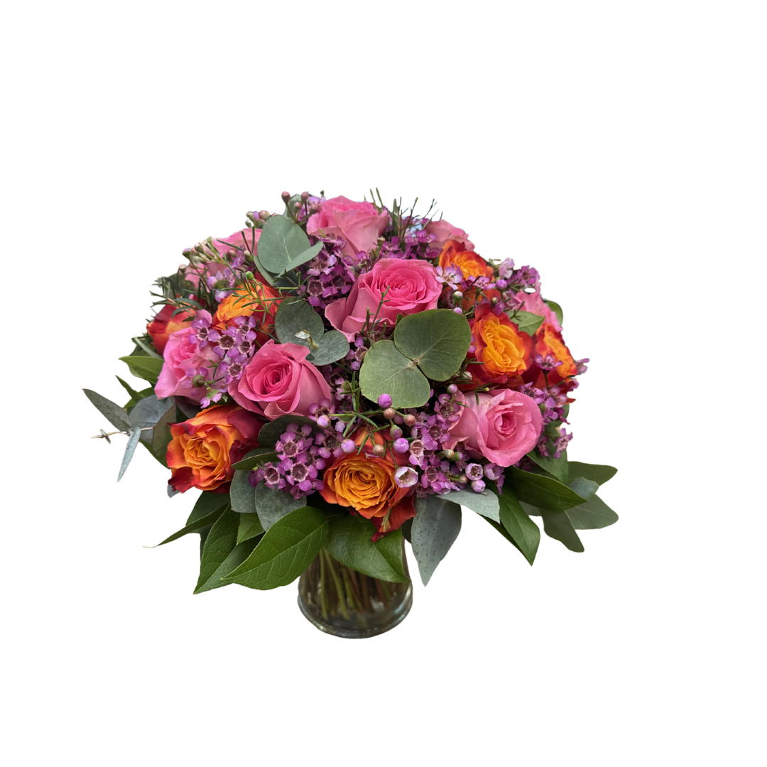 Buketten er sammensat med fokus på bevægelse, balance og naturlig elegance — perfekt til at sprede glæde og skabe en varm og livlig stemning.En farverig buket fuld af liv og energi, der lyser ethvert rum op og passer til enhver særlig anledning.